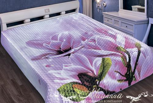 Верх покрывала – набивной рисунок в виде панно, 3D - объемное изображение, низ – однотонная ткань в тон. Края обработаны шелковой бейкой, упаковка прозрачный чемодан ПВХ с большим вкладышем и фото.