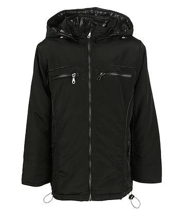 Куртка демисезонная утепленная (до 0 градусов), длиной до середины бедра с застежкой на молнию. Подкладка до талии - флис. Молния сверху прикрыта планкой, предохраняющей от касания с подбородком. 2 верхних и 2 боковых кармана на молнии. По низу изделия регулируемая резинка с фиксаторами, защищающая от холода. Воротник стойка. Капюшон по краю затягивается резинкой и фиксаторами, прикреплен к изделию молнией, прикрытой планкой. Отделка выполнена кантом в тон основной ткани.
